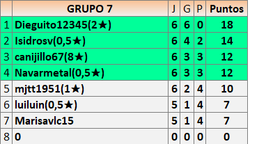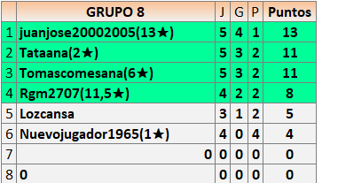 Deja un comentarioEn está página se irán publicando los resultados de las diferentes partidas, siendo ambos jugadores responsables de subirlos o de comprobar que ya hayan sido publicados insertando un COMENTARIO en la parte inferior de la pantalla (opción “Deja tu comentario”), indicando el nombre de los dos jugadores y los puntos obtenidos en la partida.
