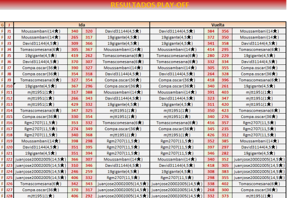 Fin PLAY OFF VUELTA: 12 de abril a las 21:00