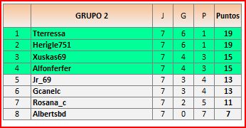 Deja un comentarioEn está página se irán publicando los resultados de las diferentes partidas, siendo el vencedor el encargado de hacerlo, insertando un COMENTARIO en la parte inferior de la pantalla (opción “Deja tu comentario“), indicando el nombre de los dos jugadores y los puntos obtenidos en la partida.