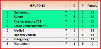 Deja un comentarioEn está página se irán publicando los resultados de las diferentes partidas, siendo el vencedor el encargado de hacerlo, insertando un COMENTARIO en la parte inferior de la pantalla (opción “Deja tu comentario“), indicando el nombre de los dos jugadores y los puntos obtenidos en la partida.