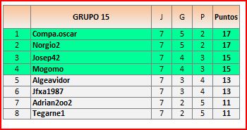 Deja un comentarioEn está página se irán publicando los resultados de las diferentes partidas, siendo el vencedor el encargado de hacerlo, insertando un COMENTARIO en la parte inferior de la pantalla (opción “Deja tu comentario“), indicando el nombre de los dos jugadores y los puntos obtenidos en la partida.