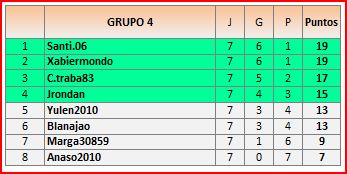 En está página se irán publicando los resultados de las diferentes partidas, siendo el vencedor el encargado de hacerlo, insertando un COMENTARIO en la parte inferior de la pantalla (opción “Deja tu comentario), indicando el nombre de los dos jugadores y los puntos obtenidos en la partida.