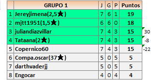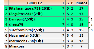 Deja un comentarioEn está página se irán publicando los resultados de las diferentes partidas, siendo ambos jugadores responsables de subirlos o de comprobar que ya hayan sido publicados insertando un COMENTARIO en la parte inferior de la pantalla (opción “Deja tu comentario”), indicando el nombre de los dos jugadores y los puntos obtenidos en la partida.