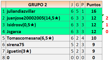 Deja un comentarioEn está página se irán publicando los resultados de las diferentes partidas, siendo ambos jugadores responsables de subirlos o de comprobar que ya hayan sido publicados insertando un COMENTARIO en la parte inferior de la pantalla (opción “Deja tu comentario”), indicando el nombre de los dos jugadores y los puntos obtenidos en la partida.