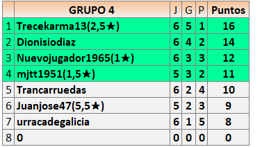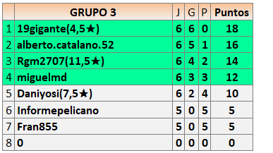 Deja un comentarioEn está página se irán publicando los resultados de las diferentes partidas, siendo ambos jugadores responsables de subirlos o de comprobar que ya hayan sido publicados insertando un COMENTARIO en la parte inferior de la pantalla (opción “Deja tu comentario”), indicando el nombre de los dos jugadores y los puntos obtenidos en la partida.
