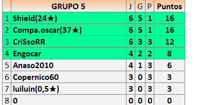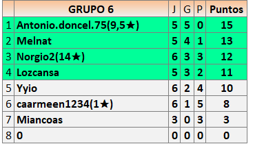 Deja un comentarioEn está página se irán publicando los resultados de las diferentes partidas, siendo ambos jugadores responsables de subirlos o de comprobar que ya hayan sido publicados insertando un COMENTARIO en la parte inferior de la pantalla (opción “Deja tu comentario”), indicando el nombre de los dos jugadores y los puntos obtenidos en la partida.