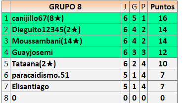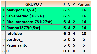 Deja un comentarioEn está página se irán publicando los resultados de las diferentes partidas, siendo ambos jugadores responsables de subirlos o de comprobar que ya hayan sido publicados insertando un COMENTARIO en la parte inferior de la pantalla (opción “Deja tu comentario”), indicando el nombre de los dos jugadores y los puntos obtenidos en la partida.
