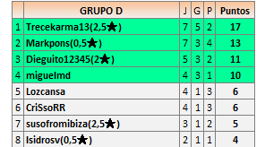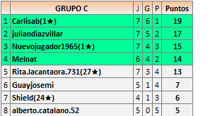 Deja un comentarioEn está página se irán publicando los resultados de las diferentes partidas, siendo ambos jugadores responsables de subirlos o de comprobar que ya hayan sido publicados insertando un COMENTARIO en la parte inferior de la pantalla (opción “Deja tu comentario”), indicando el nombre de los dos jugadores y los puntos obtenidos en la partida.