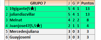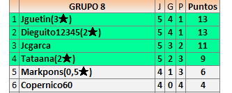 Deja un comentarioEn está página se irán publicando los resultados de las diferentes partidas, siendo ambos jugadores responsables de subirlos o de comprobar que ya hayan sido publicados insertando un COMENTARIO en la parte inferior de la pantalla (opción “Deja tu comentario”), indicando el nombre de los dos jugadores y los puntos obtenidos en la partida.