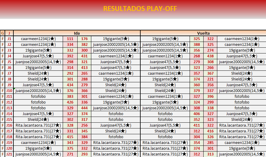 Inicio PLAY OFF VUELTA: 26 de julio a las 00:01
