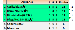 Deja un comentarioEn está página se irán publicando los resultados de las diferentes partidas, siendo ambos jugadores responsables de subirlos o de comprobar que ya hayan sido publicados insertando un COMENTARIO en la parte inferior de la pantalla (opción “Deja tu comentario”), indicando el nombre de los dos jugadores y los puntos obtenidos en la partida.