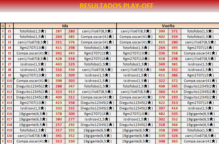Enhorabuena al resto de finalistas, ya casi todos los jugadores de los play off son unos clásicos