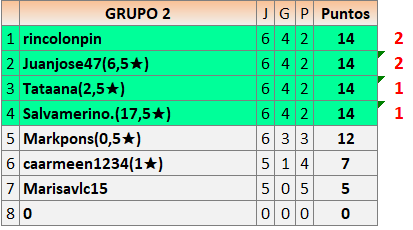 1En está página se irán publicando los resultados de las diferentes partidas, siendo ambos jugadores responsables de subirlos o de comprobar que ya hayan sido publicados insertando un COMENTARIO en la parte inferior de la pantalla (opción “Deja tu comentario”), indicando el nombre de los dos jugadores y los puntos obtenidos en la partida.