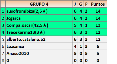 Deja un comentarioEn está página se irán publicando los resultados de las diferentes partidas, siendo ambos jugadores responsables de subirlos o de comprobar que ya hayan sido publicados insertando un COMENTARIO en la parte inferior de la pantalla (opción “Deja tu comentario”), indicando el nombre de los dos jugadores y los puntos obtenidos en la partida.