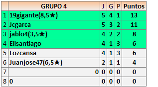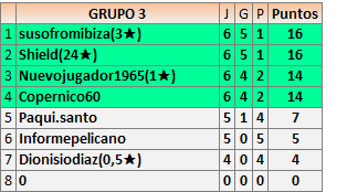 Deja un comentarioEn está página se irán publicando los resultados de las diferentes partidas, siendo ambos jugadores responsables de subirlos o de comprobar que ya hayan sido publicados insertando un COMENTARIO en la parte inferior de la pantalla (opción “Deja tu comentario”), indicando el nombre de los dos jugadores y los puntos obtenidos en la partida.