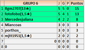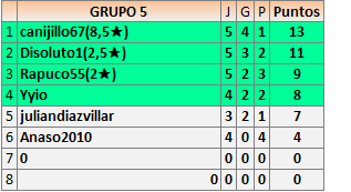 Deja un comentarioEn está página se irán publicando los resultados de las diferentes partidas, siendo ambos jugadores responsables de subirlos o de comprobar que ya hayan sido publicados insertando un COMENTARIO en la parte inferior de la pantalla (opción “Deja tu comentario”), indicando el nombre de los dos jugadores y los puntos obtenidos en la partida.