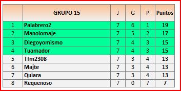 Deja un comentarioEn está página se irán publicando los resultados de las diferentes partidas, siendo el vencedor el encargado de hacerlo, insertando un COMENTARIO en la parte inferior de la pantalla (opción “Deja tu comentario“), indicando el nombre de los dos jugadores y los puntos obtenidos en la partida.