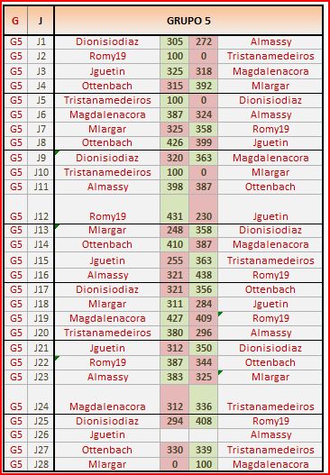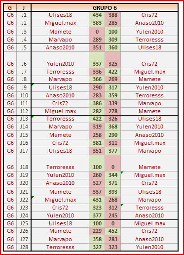 Player 1 (385) – Player 2 (246)CLASG5 G5CLASG6G6