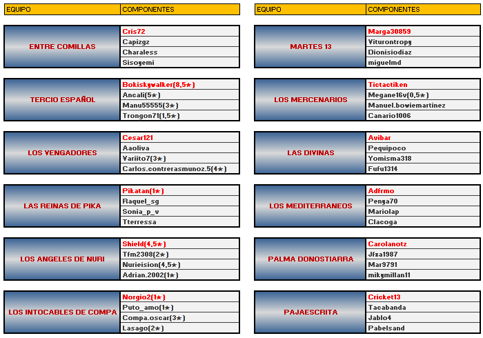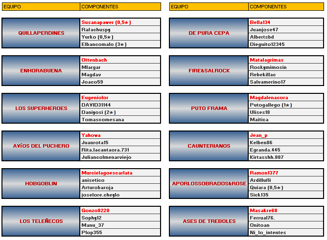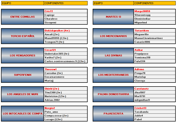 EQUIPOS INSCRITOS