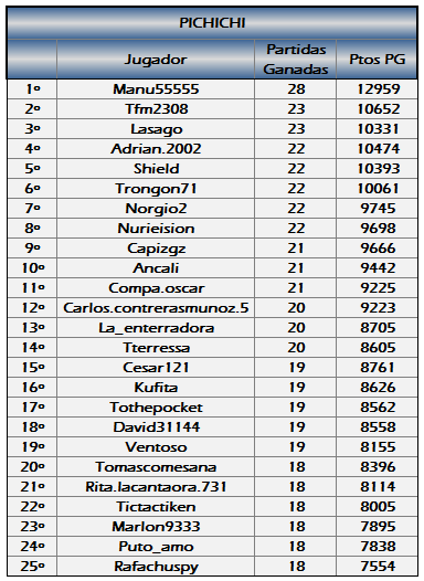 Muchas gracias Desi…..La verdad que me hace mucha ilusión este reconocimiento de pichichi…pues para mi ha sido un reto nada fácil,… Además casi todos mis enfrentamientos han sido con los que están arriba en esta tabla….(no ha habido partida fácil en este torneo)…era la única forma de sacar ventaja en la clasificación…jugando frente a frente, semana tras semana, contra los mejores rivales.