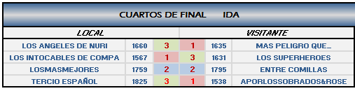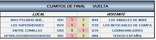 IMPORTANTE: En el caso de empate (2-2 y 2-2, 4-0 y 4-0, 3-1 y 3-1) el equipo que pasará a la siguiente ronda será el que mas puntos totales haya realizado como visitante.