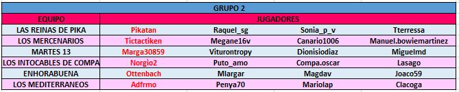 NOTA: En el equipo Las reinas de Pika, el ultimo componente es Tterressa.