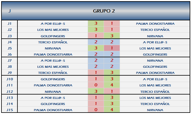 EQUIPO 1 ( 3 ) – EQUIPO LETRAS ( 1 ) SOLO EN CASO DE EMPATE A 2 ES NECESARIO PONER LA SUMA DE LAS PUNTUACIONES