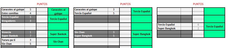 - En caso de empate a 4 victorias por cada equipo, el vencedor será el que mas puntos consiga en la puntuación de las 8 partidas