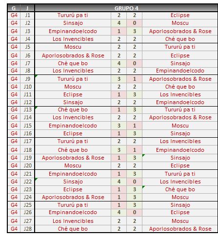 G4 CLASIFICACION GRUPO 4 COMPLETO