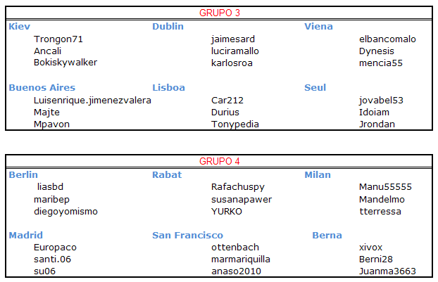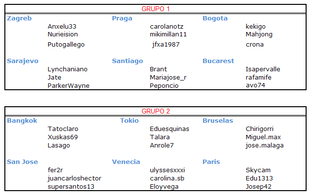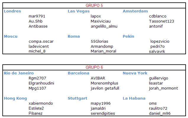A continuación podéis encontrar los participantes que componen cada equipo: