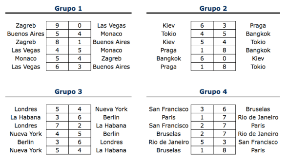 1En está página se irán indicando los resultados de las diferentes partidas. Lo único que tienes que hacer es insertar un comentario en la parte inferior de la pantalla (“Deja tu comentario”) indicando el nombre de los dos usuarios y los puntos obtenidos por ambos en la partida. El vencedor de cada partida será el encargado de comunicar el resultado en este apartado.
