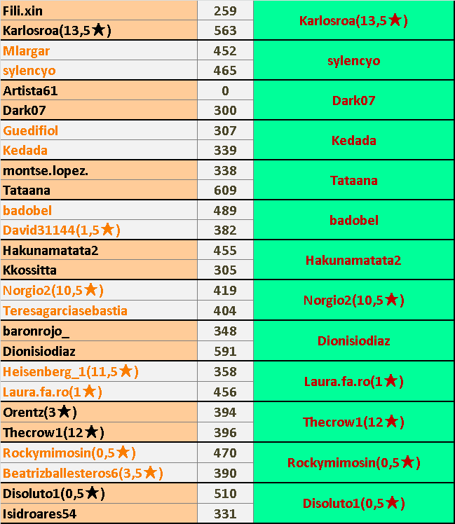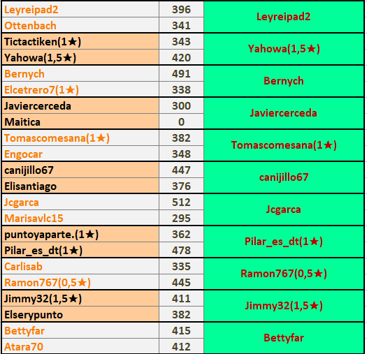 Javiercerceda (262) – Maitica (398) lo siento me han retado esta tarde, ni me había enterado de las fechas y tampoco entiendo el resultado, acabamos de terminar y él tampoco me ha comentado que tuviéramos que acabar a las 21 horas