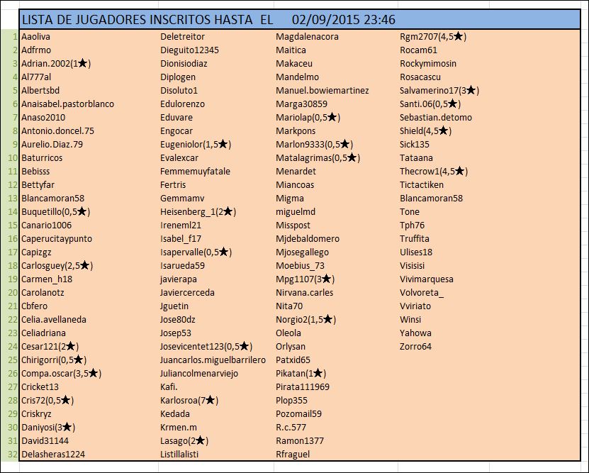 Cada semana la organización irá publicando las partidas entre jugadores que hayan perdido el mismo número de partidas. Así cada semana habrá algún eliminado hasta llegar a la gran final.