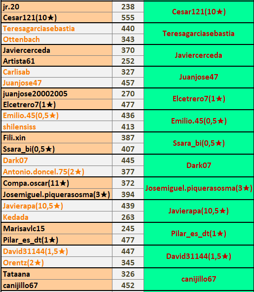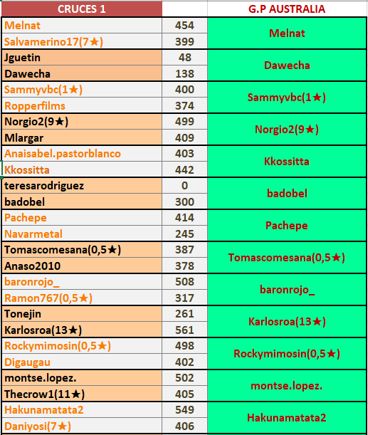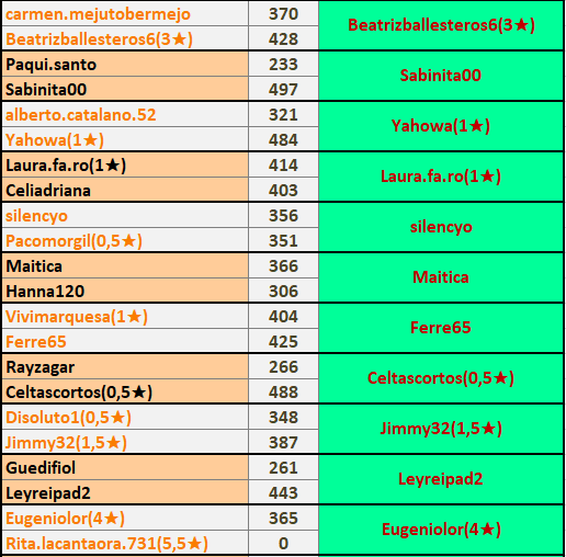 Como los siguientes enfrentamientos se determinan por el orden que nos dan los puntos a favor, dejamos estos inalterados para no desvirtuar el lugar que ocupa el ganador del enfrentamiento.