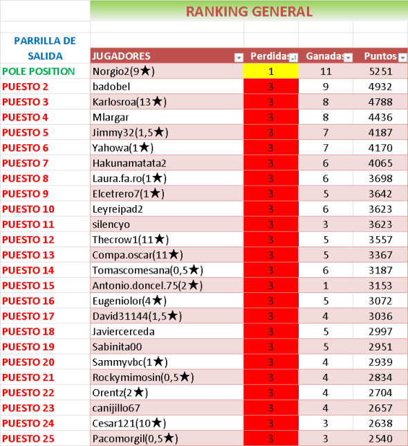 Quisiera protestar enérgicamente porque a Antonio Doncel no se le ha hecho un reconocimiento como es debido, ya que hacer 3.153 puntos en cuatro carreras no está al alcance de cualquiera. Felicidades Antonio!