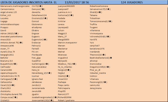 HASTA EL 15 DE ENERO O UN TOPE DE 80 JUGADORES