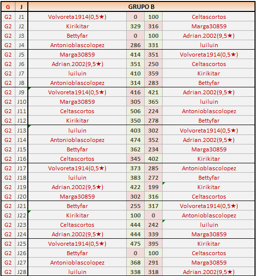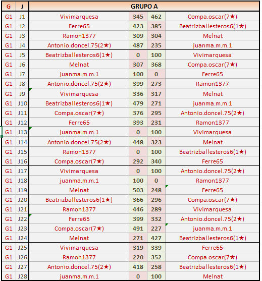 Deja un comentarioES OBLIGATORIO RESPETAR EL ORDEN LOCAL (IZQ) Y VISITANTE (DER), ASÍ COMO INDICAR EL GRUPO CORRESPONDIENTE Y LOS NÚMEROS DE JORNADA.
