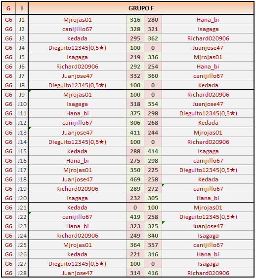 Deja un comentarioES OBLIGATORIO RESPETAR EL ORDEN LOCAL (IZQ) Y VISITANTE (DER), ASÍ COMO INDICAR EL GRUPO CORRESPONDIENTE Y LOS NÚMEROS DE JORNADA.