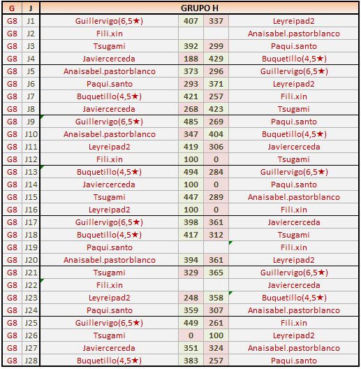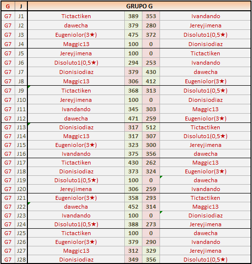 Deja un comentarioES OBLIGATORIO RESPETAR EL ORDEN LOCAL (IZQ) Y VISITANTE (DER), ASÍ COMO INDICAR EL GRUPO CORRESPONDIENTE Y LOS NÚMEROS DE JORNADA.