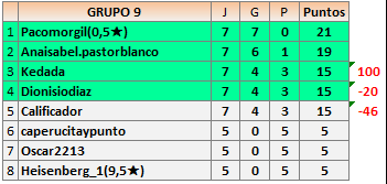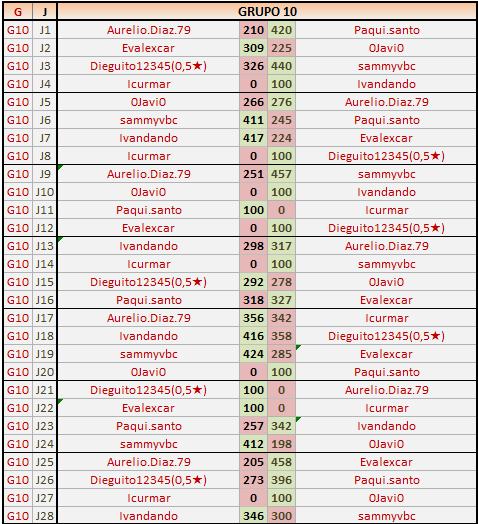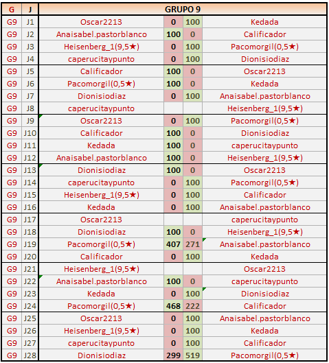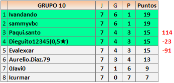 Deja un comentarioEn está página se irán publicando los resultados de las diferentes partidas, siendo ambos jugadores responsables de subirlos o de comprobar que ya hayan sido publicados insertando un COMENTARIO en la parte inferior de la pantalla (opción «Deja tu comentario»), indicando el nombre de los dos jugadores y los puntos obtenidos en la partida.