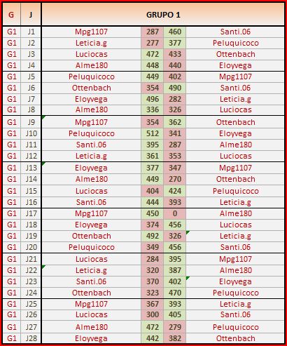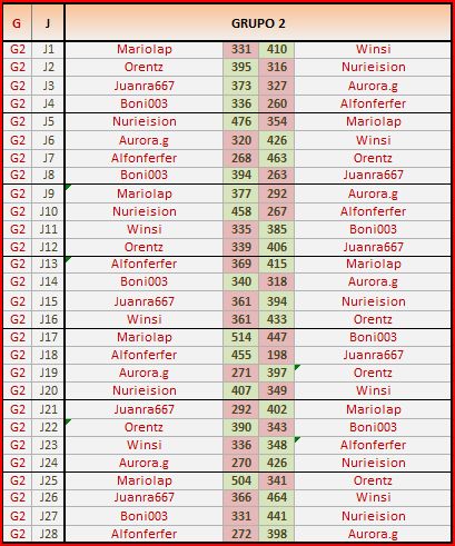 Deja un comentarioEn está página se irán publicando los resultados de las diferentes partidas, siendo ambos jugadores los responsables de subirlos, o comprobando que ya hayan sido subidos, insertando un COMENTARIO en la parte inferior de la pantalla (opción «Deja tu comentario«), indicando el nombre de los dos jugadores y los puntos obtenidos en la partida.