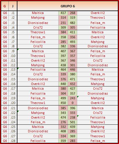 Deja un comentarioEn está página se irán publicando los resultados de las diferentes partidas, siendo ambos jugadores los responsables de subirlos, o comprobando que ya hayan sido subidos, insertando un COMENTARIO en la parte inferior de la pantalla (opción «Deja tu comentario«), indicando el nombre de los dos jugadores y los puntos obtenidos en la partida.