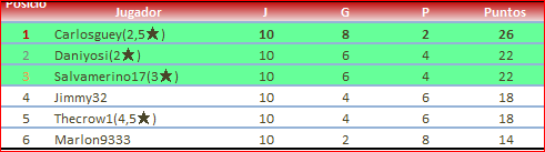 Me alegro mucho que haya ganado carlosguey,da gusto madrugar con una buena noticia. No eres el mejor jugador pero si uno de los más honrados. Tu victoria es victoria al mismo tiempo del fair-play.
