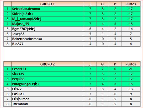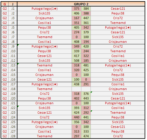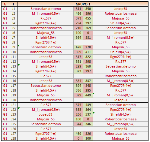 Deja un comentarioEn está página se irán publicando los resultados de las diferentes partidas, siendo ambos jugadores los responsables de subirlos, o comprobando que ya hayan sido subidos, insertando un COMENTARIO en la parte inferior de la pantalla (opción «Deja tu comentario«), indicando el nombre de los dos jugadores y los puntos obtenidos en la partida.