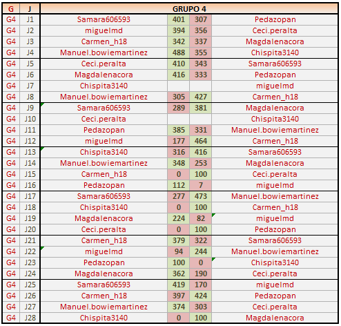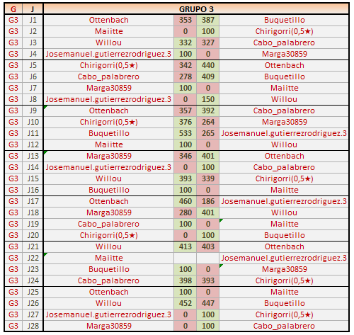 Deja un comentarioEn está página se irán publicando los resultados de las diferentes partidas, siendo ambos jugadores los responsables de subirlos, o comprobando que ya hayan sido subidos, insertando un COMENTARIO en la parte inferior de la pantalla (opción «Deja tu comentario«), indicando el nombre de los dos jugadores y los puntos obtenidos en la partida.
