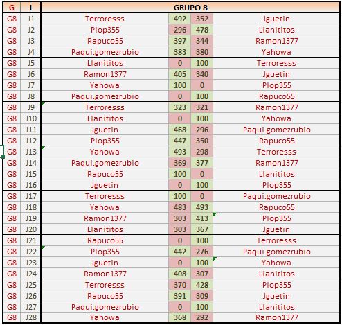 Deja un comentarioEn está página se irán publicando los resultados de las diferentes partidas, siendo ambos jugadores los responsables de subirlos, o comprobando que ya hayan sido subidos, insertando un COMENTARIO en la parte inferior de la pantalla (opción «Deja tu comentario«), indicando el nombre de los dos jugadores y los puntos obtenidos en la partida.