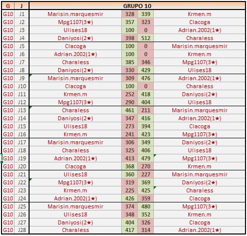 Deja un comentarioEn está página se irán publicando los resultados de las diferentes partidas, siendo ambos jugadores los responsables de subirlos, o comprobando que ya hayan sido subidos, insertando un COMENTARIO en la parte inferior de la pantalla (opción «Deja tu comentario«), indicando el nombre de los dos jugadores y los puntos obtenidos en la partida.