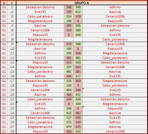 Deja un comentarioEn está página se irán publicando los resultados de las diferentes partidas, siendo ambos jugadores los responsables de subirlos, o comprobando que ya hayan sido subidos, insertando un COMENTARIO en la parte inferior de la pantalla (opción «Deja tu comentario«), indicando el nombre de los dos jugadores y los puntos obtenidos en la partida.