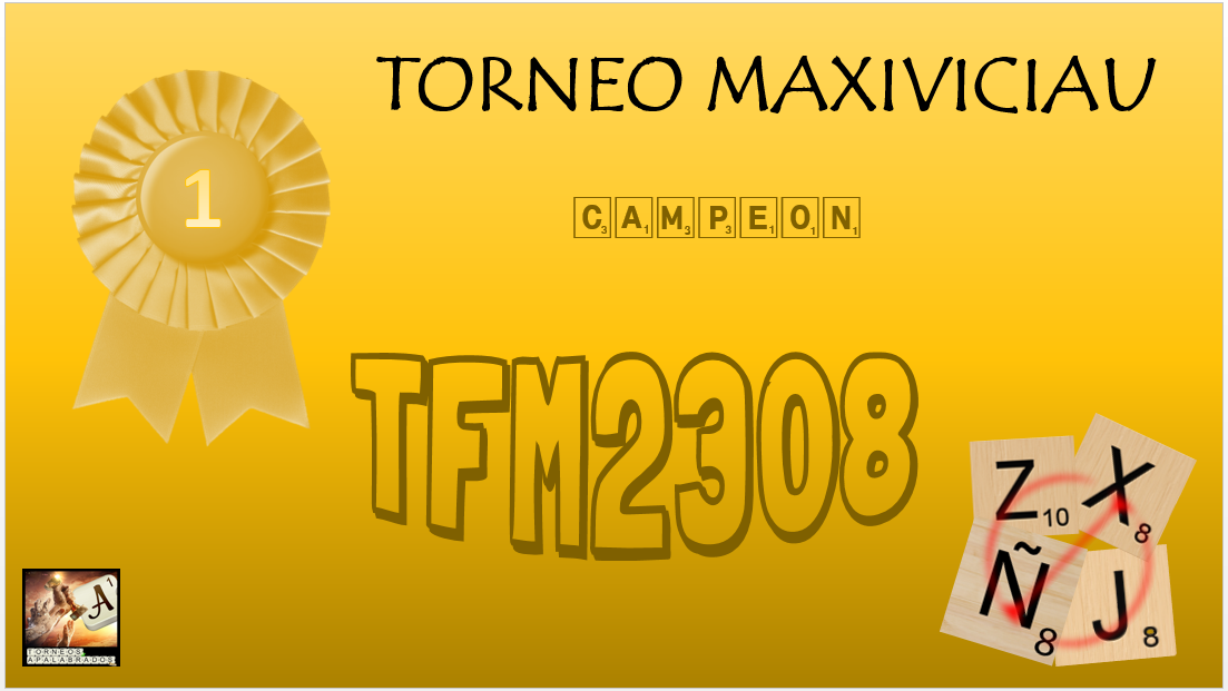 Por otra parte, quiero dedicar esta victoria tanto a mi amigo y compañero en los torneos de parejas Mark Pons, como a mis nuevos compis del torneo de equipos, tres auténticos Killers del apalabrados, empezando por el pitagorín Adrían, siguiendo con Sergio, el capitán y boticario de la tienda de ultramarinos, y terminando por la entrañable Nuria (…de hecho, es a ella a quien debo cada uno de los torneos que he ganado en esta web, ya que fue quien me hablo de su existencia…).