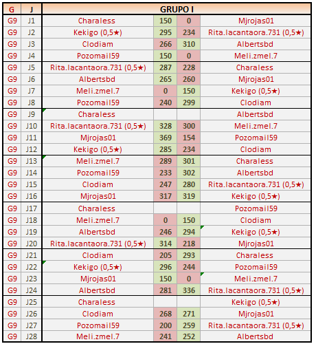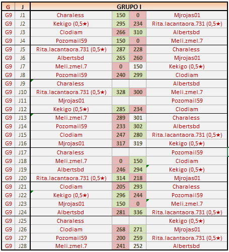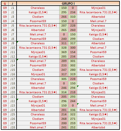Deja un comentarioEn está página se irán publicando los resultados de las diferentes partidas, siendo ambos jugadores los responsables de subirlos, o comprobando que ya hayan sido subidos, insertando un COMENTARIO en la parte inferior de la pantalla (opción «Deja tu comentario«), indicando el nombre de los dos jugadores y los puntos obtenidos en la partida.